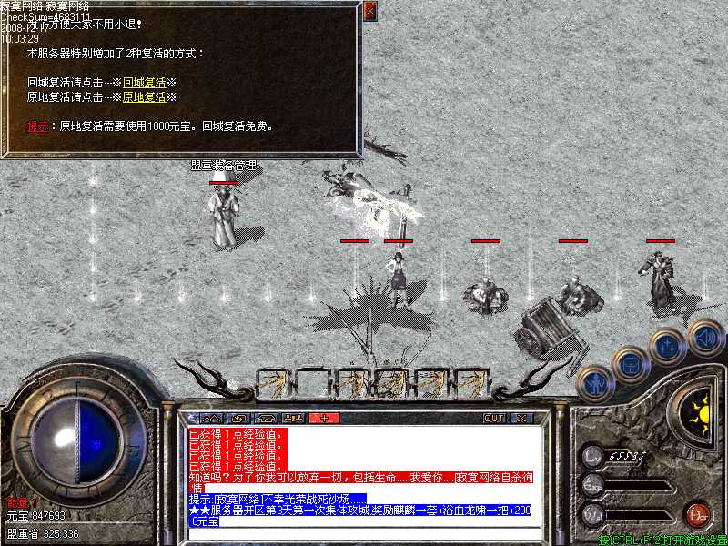 死了只要你有元宝可以在死的地方直接复活,复活一次1000元宝