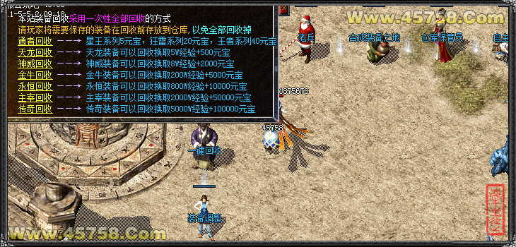 【装备回收】:金牛=5000元宝 永恒=1万元宝◆主宰=5万元宝◆传奇=10万元宝